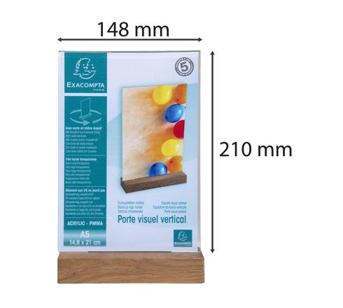 Gerader, vertikaler Tischaufsteller (in Form eines umgedrehten T). Mit einem Sockel aus massivem Eichenholz. Vorder- und rückseitig verwendbar.
