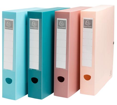 ARCHIVBOX MIT DRUCKKNOPF, RÜCKENBREITE 60MM, RECYCLING-PP, SKANDI - FARBEN SORTIERT