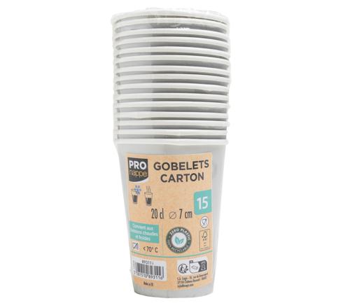 Packung mit 15 Pappbechern, 20 cl, Ø 7 cm, eingeschweißt. Hergestellt in Europa.