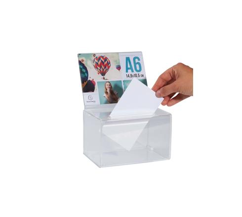 Urne mit abschließbarem Klappdeckel, die vielseitig verwendbar ist: als Losbox für Verlosungen oder auch Einwurfbox für Gewinnspiele, Wahlen oder auch als Ideenbox für Mitarbeiter und/oder Kunden.