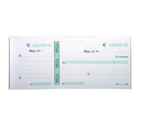 Carnet à souche qui permet de garder le talon du reçu. Sans mention de TVA