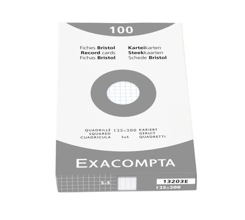 Record Cards Pack 100 White 125X200 Squared Exacompta Bristol record cards and made from Clairefontaine paper which is compatible for inkjet and laser printing and photocopying Each type of record card is presented in a different colour case to be easily recognisable and convenient to use Packs of index cards in a box are available individually Weight 205gsm