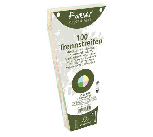 PAQUET 100 FICHES INTERCALAIRES TRAPÉZOÏDALES UNIES PERFORÉES FOREVER - 105X240MM - COULEURS ASSORTIES