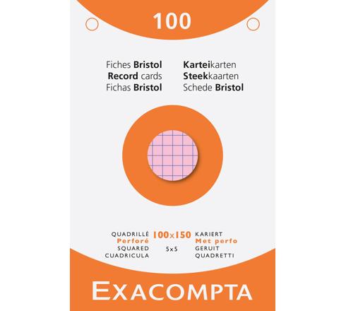 Record Cards Punched Pack 100 Assorted 100X150 Squared Exacompta Bristol record cards and made from Clairefontaine paper which is compatible for inkjet and laser printing and photocopying Each type of record card is presented in a different colour case to be easily recognisable and convenient to use Packs of index cards in a box are available individually Weight 205gsm