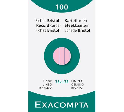 EXACOMPTA RECORD CARDS PACK 100 BLUE 75X125 LINED - PINK
