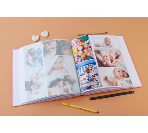 The 29x32cm book album is a traditional large size album with a high resistance textured paper cover that ensures good durability. It allows good presentation capacity with up to 5 photos per page.