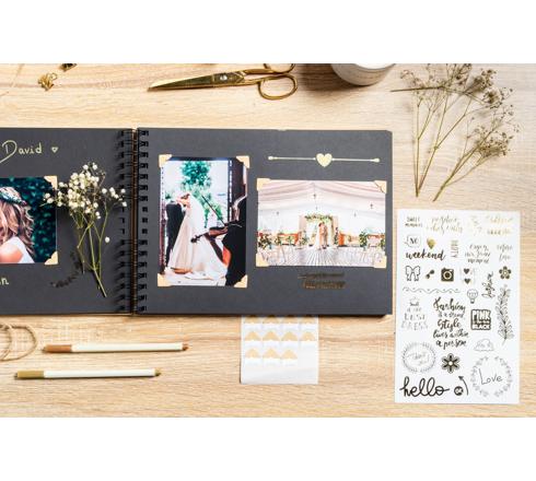 Deux planches de stickers aux motifs classiques couleurs pastel et deux planches de stickers originaux et tendance couleur or, avec au total 300 stickers.