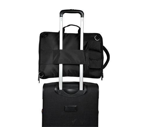 Exacompta Exactive Two-Way Laptop Case/Backpack The Dual bag from Exactive is a mixed between a bag and backpack, either worn on the shoulder or on the back with its detachable handles. - Lightweight less than 1kg, it can carry a computer up to 15.6'' 38x27x3cm, documents and many accessories. - It has many vertical and horizontal pockets, including spaces for smartphones, pens, cards, etc. There are also 2 interior compartments including 1 reinforced one to protect computer or tablet. A loop on the back allows the backpack to slide along a telescopic handle.