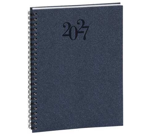 Couverture cartonnée, recouverte d'un papier fantaisie. Spirale métal extérieure. Marquage du millésime à chaud. Les + : - impression en bleu et gris, sur papier blanc Clairefontaine, reconnu pour sa qualité et pour permettre une écriture douce et fluide, - tranche naturelle, - emplacements pour les rappels, - coins détachables, pour pouvoir accéder rapidement à la semaine en cours.