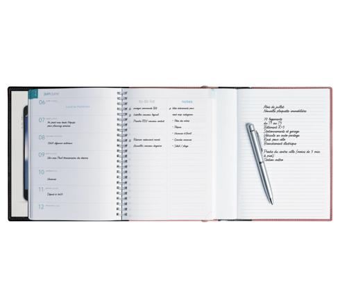 Les + : la grille EasyTime offre la semaine complète sur une page ( même espace pour chaque jour de la semaine) sans horaire fixe pour plus de flexibilité, ainsi qu'une page de notes et to-do list. Chaque début de mois dispose dune double page de calendrier mensuel. L'édition est bilingue français-anglais.