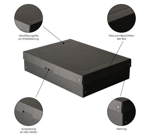 Ses poignées pratiques, ses champs d'inscription et rainures de renfort sur le couvercle sont gages de sa qualité de conception.