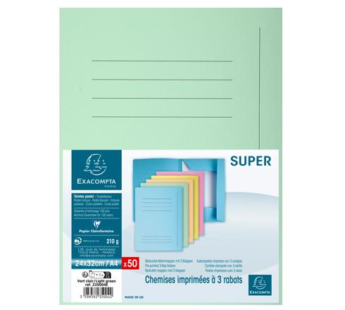 PACK OF 50 PRINTED 3 FLAP FOLDERS SUPER 210 - 24X32CM - LIGHT GREEN