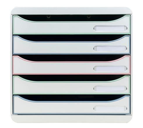 The Big Box Plus filing unit features 5 drawers for filing A4 and A4+ format documents, 24x32cm elasticated pockets or large format envelopes. This product has a simple and very ergonomic design and is suitable for the workplace, home office or school.