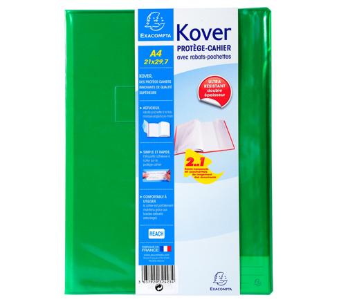 Book cover Kover - 21x29,7cm Kover is the only book cover with pocket-flap. The flap makes it easy to locate the page. The pocket en ables to file documents. Premium quality : double thickness PVC (220 microns). Larger strip for a better protection. Delivered with an adhesive label to identify the content and note the name. Addition and multiplication tables + rules available on the cardboard insert. 60 pcs per display.