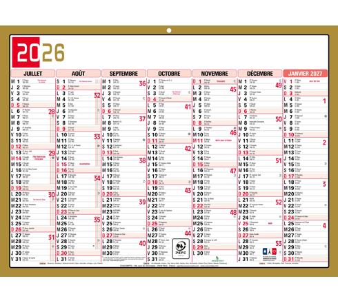 CALENDRIER TRICOLORE 22 X 29,5 CM SEMESTRIEL 2026 - ROUGE, NOIR ET OR