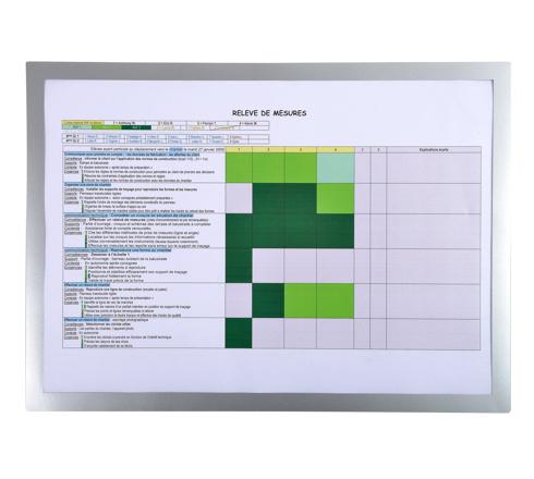 Au verso de la pochette, 3 côtés aimantés pour maintenir la pochette en place et 1 côté pour glisser la feuille sans avoir à déplacer la pochette.