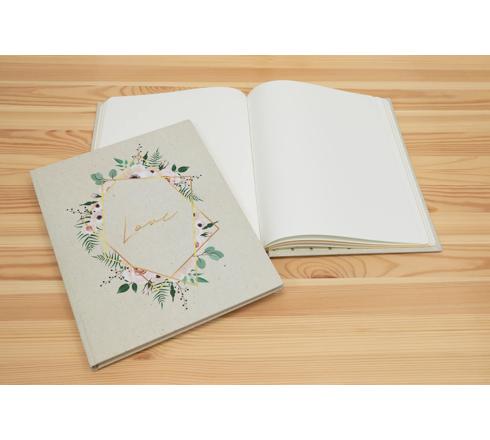 Ce très joli livre d'or de mariage champêtre allie charme et modernité pour sublimer les écrits du plus beau jour de votre vie. Son motif nature et floral est ultra tendance pour un mariage bohème chic.