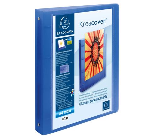 The Kreacover Ring Binder is made from Poplypropylene and has a rigid cover. 4 rings which are 30mmin size and the spine is 40mm in size. External pocket for personalisation