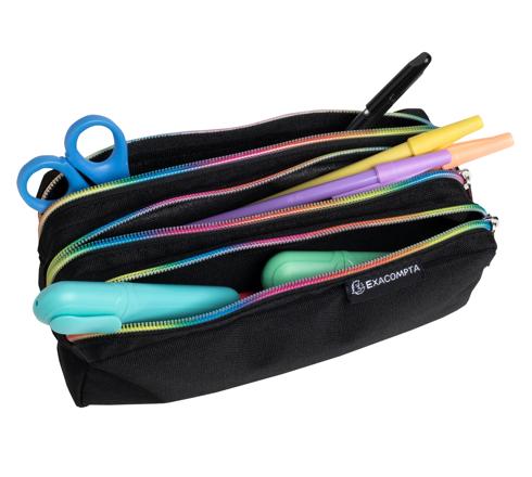 RAINBOW 3-COMPARTMENT RECTANGLE PENCIL CASE - BLACK