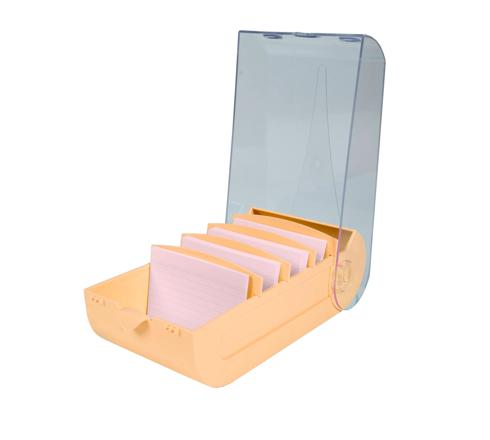 BunnyBox Flash/Revision Card Box, A7 -Ideal for learning of vocabulary. - original 'BunnyBox' shape with 2 big ears on the cover and the nose used as practical and secure closing notch (box doesn't get opened in backpack). -Practical sliding cover that disappear below the box to gain space and avoid lost. - Included are 100 A7 lined cards and 4 variable dividers for creating 5 variable partitions. - For up to 900 cards A7.