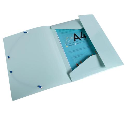 Bee Blue PP Elasticated 3 Flap Folder A4 Ideal for boosting performance and enthusiasm, Bee Blue is an eco-friendly selection of Exacompta filing and desktop accessories. The range is created using Blue Angel certified recycled PP, which gives a second life to old materials and incorporates a choice of 4 vivid trendy colours saffron, navy blue, light blue and turquoise. Excellent document retention thanks to interior flaps and blue elastic bands. Convenient for transporting and storing your documents. 3 Flap folder with elasticated closures. Size 24 x 32cm for A4 sheets. Spine label to identify contents. 4 assorted colours: Saffron, turquoise, navy blue and light blue.