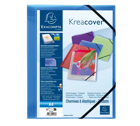 CHEMISE À ÉLASTIQUES 3 RABATS POLYPROPYLÈNE TRANSLUCIDE KREA COVER - A4 - COULEURS ASSORTIES