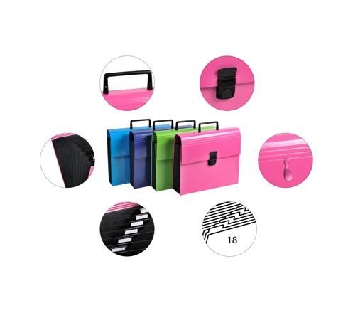 Exacompta Iderama Expanding Case Iderama coloured paper covers Reinforced gussets closed on 3 sides Snap lock closure Easy carry ha ndle - Six assorted colours (anise green, black, light blue, pink, purple and red)