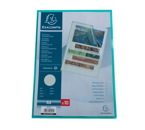 EXACOMPTA PP CUT FLUSH FOLDER A4 0.12MM GRAIN, PACK OF 10 - GREEN