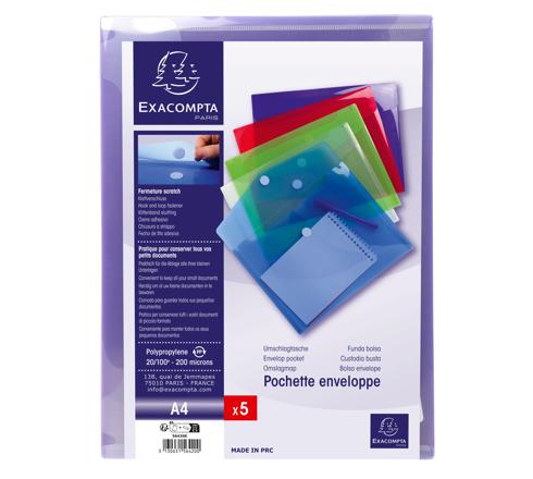 Exacompta Envelope Pockets are practical for organising documents, files or other materials while providing a reliable closing method. Featuring a hook and loop closure which is used for easy access and secure storage.