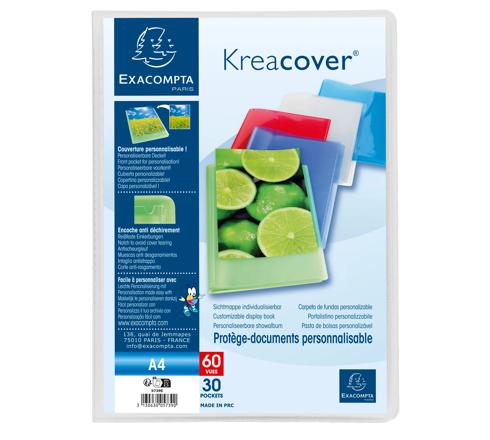 Kreacover PP Display Book, A4 Semi rigid opaque PP covers 0.5mm Pocket for personalisation on the front cover Crystal clear pockets for high transparency 24x32cm for A4. 60 Views, 30 Pockets