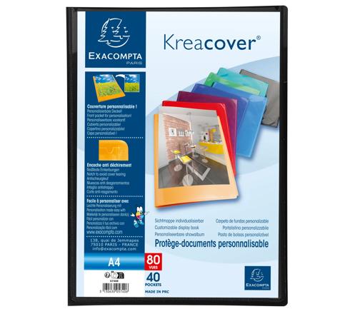 Kreacover PP Display Book, A4. Semi rigid opaque PP covers 0.5mm Pocket for personalisation on the front cover Crystal clear pockets for high transparency 24x32cm for A4. 80 Views, 40 Pockets