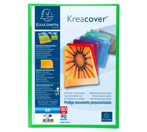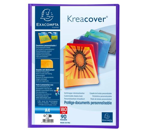 Kreacover PP Display Book, A4 Semi rigid opaque PP covers 0.5mm Pocket for personalisation on the front cover Crystal clear pockets for high transparency 24x32cm for A4. 180 Views, 90 Pockets