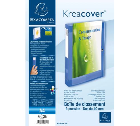 "A filing box with pocket on the 1st cover to customise records, customer presentations. Inovating material: shiny inside and grainy outside for higher transparency. 40mm Spine"