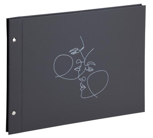 A traditional Exacompta screw bound photo album with matt black cover made from imitation leather material. The modern twist of this classic design is suitable for various occasions, including weddings, anniversaries and engagements. The vivid white embossed motif represents two faces.