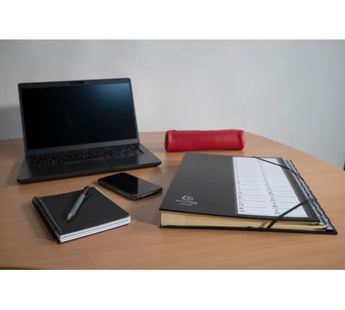 TRIEUR RIGIDE ORDONATOR AVEC CAVALIERS PLASTIQUES ET ÉLASTIQUES ALPHABÉTIQUE 26 COMPARTIMENTS DE A À Z - NOIR