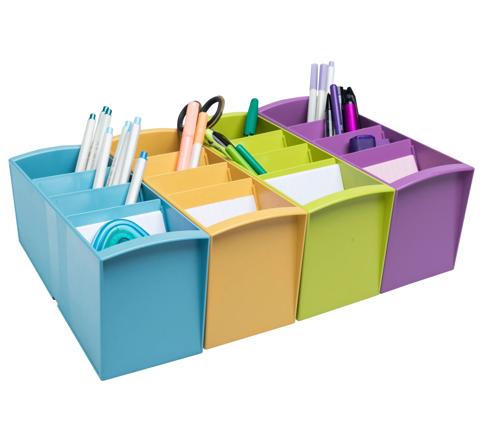 Its 4 compartments of different depths, from 8 to 11cm, allow you to use it as a pencil holder, store your highlighters, scissors, sticky notes, telephone or various small accessories. Usable upright or lying down and juxtaposable, you can clip several products together using the clips provided. This will allow you to optimise your organisation and increase your storage capacity.