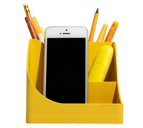 Thanks to its 5 compartments of different heights you can store all your most common utensils. It offers 4 high compartments for large utensils: scissors, pens and 1 low compartment for small objects such as paper clips, drawing pins, USB key or even mobile phone.