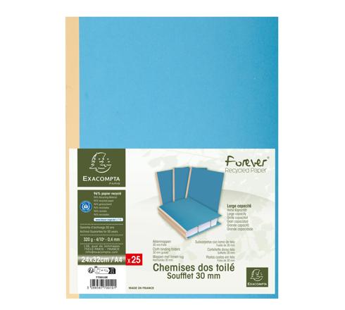 EXACOMPTA FOREVER RECYCLED A4 CLOTH SPINE FOLDERS (PACK OF 25) - BRIGHT BLUE