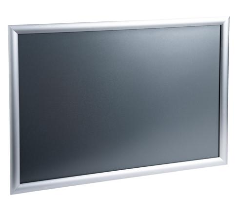 Wall frame aluminium A2 The Exacompta aluminium wall frame allows you to display information and can be used both horizontally and vertically. The frame is opened from the front by lifting its wide bevelled aluminium edges for easy poster changing. The anti-reflective screen allows the sign to be viewed perfectly from any angle, without being obscured. It is easily fixed to the wall using the screws provided. You can easily create your personalised signs in the right size with KREAMAN on www.exacompta.com