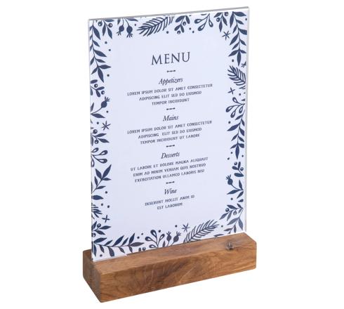 STAND UP SIGN HOLDER W.WOOD BASE A5 PORT - CRYSTAL