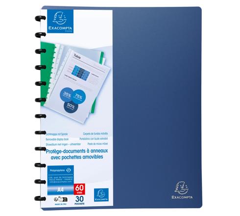 Display Book PP with Removable pockets - 30 pockets - A4 This display book with removable pockets so that you can modify the classification flow without having to insert documents again. Thanks to its rigid polypropylene 0.8 mm, it is very resistant and keep contents secure. The pockets are in grained transparent polypropylene.