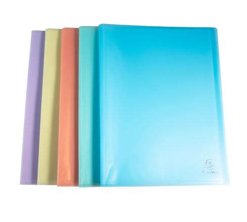 Chromaline Pastel Display book, 40 pockets semi-rigid PP A4 Following the success of the very popular Chromaline range in schools and offices, Exacompta is launching Chromaline pastel, an assortment of soft colours for a zen and fun atmosphere. For the home office or school, find the essentials of translucent polypropylene filing in trendy colours which match the Aquarel range. These display books allow you to easily leaf through documents. Soft translucent cover. High transparency smooth crystal clear pockets 80 views. A4 size.