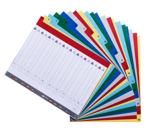 INDICES PP A4+ 20PT A-Z COL TABS WHITE - BRIGHT COLOURS ASSORTED