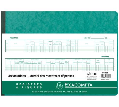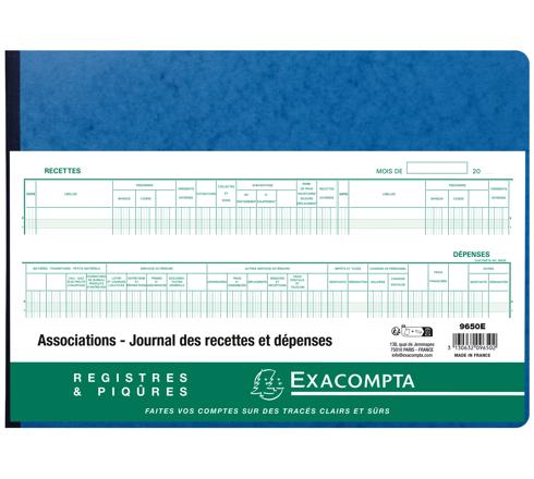 Le journal Recettes Dépenses Exacompta dédié aux associations leur permet de tenir à jour et à la lecture des adhérents les comptes de l'association. Il présente une double page avec à gauche le détail des recettes et à droite le détail des dépenses sur 31 lignes + 1 ligne de totaux. En en-tête doivent être indiqués le mois et l'année. Chaque double page est numérotée pour éviter les ruptures et falsifications. Facile à remplir, il est un outil pratique à utiliser.