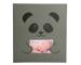 COUVERTURE : avec le motif PANDA de couleur grise. Couverture en papier, avec des motifs panda ou chat avec un effet bi-matière La découpe de fenêtre est originale