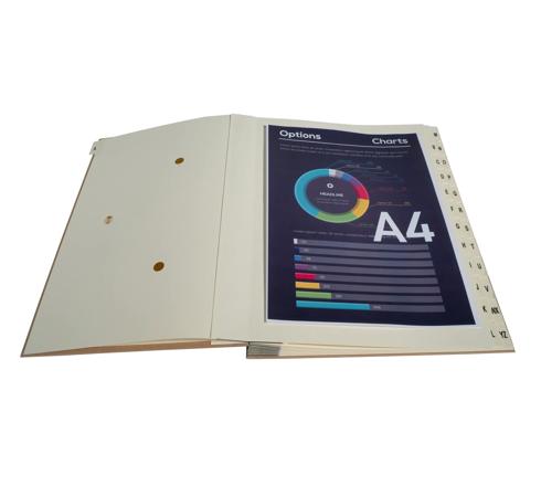 El respaldo ampliable garantiza una gran capacidad de archivo de más de 350 hojas que se pueden organizar alfabéticamente de la A a la Z.