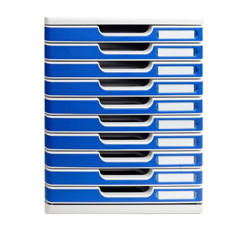 Los módulos A4 de Exacompta cuentan con cajones cerrados que permiten mantener los documentos libres de polvo. Deslizamiento perfecto de los cajones, con stop de seguridad, tirador de cajón confortable y porta-etiqueta.