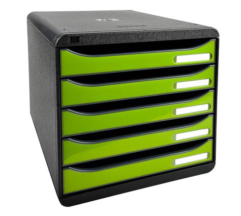 MÓDULO BIG-BOX PLUS CON 5 CAJONES PARA DOCUMENTOS A4+, ULTRA-RÍGIDO Y CON STOP DE SEGURIDAD - 347X278X271 MM - IDERAMA - VERDE ANIS GLOSSY