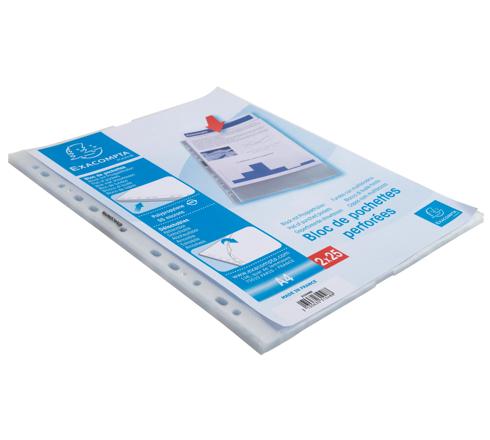 BOLSA DE 50 FUNDAS CON MULTITALADRO EN BLOC A4 5,5/100E POLIPROPILENO LISO - CRISTAL