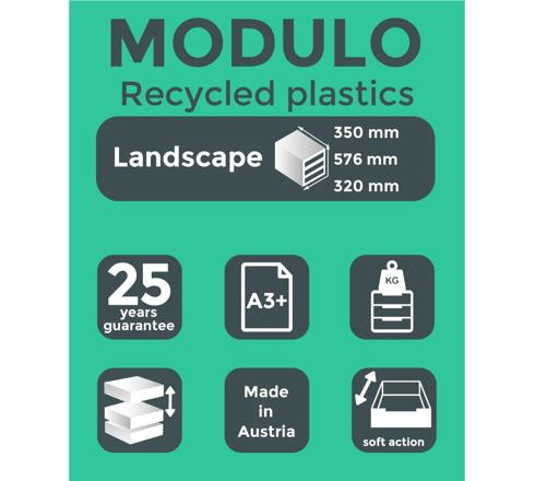 Los módulos son yuxtaponables y apilables y escalables gracias a 2 alturas de cajones intercambiables diferentes.